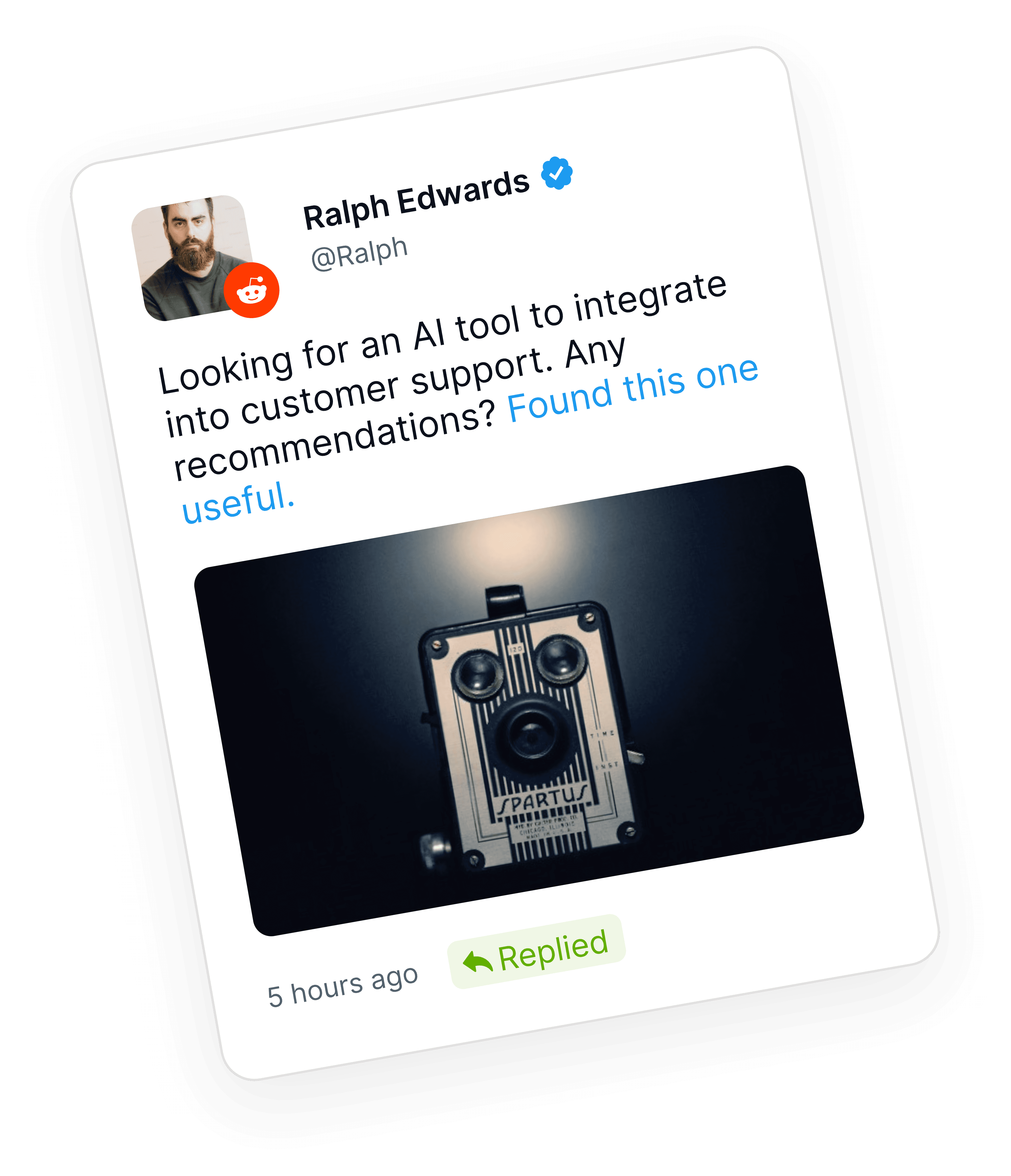 Replyq finds the perfect conversations to mention your product and drafts suggested replies.